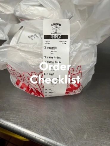 We create a Checklist and Individual Item labels by parsing the POS system and only printing labels for Take-Out. The Checklist goes on the Take-Out bag and has all the pertinent information. Name, Pick-Up Time, etc. The Checklist also contains all of the items in the order. Each individual Item label has the Name, Item with Modifiers and is sequentially numbered for accuracy.